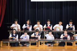 2B「授業中あるある」 授業中によく見られる光景を 演じました! 「こんなことあるある!」 会場からは、 温かい笑いが起きました! |