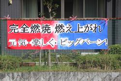 「応援フェスタ」 応援・看板ともに 夏休みから取り組んできました。 青組、赤組、互いに相手チームの発表を手拍子をしながら応援しあい盛り上げていました*** |