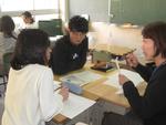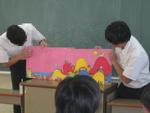3年生では毎年、11月に保育の実習で町内の保育所や幼稚園でお世話になります。今年度もその11月での実習に向けて、早くも取り組みが始まっています。先週の金曜日(17日)、絵本の読み聞かせの活動をされている「トマト」さんにお越しいただき、絵本の読み聞かせ方を教えていただきました。小さい子どもたちには、「怖い」などのネガティブな感情を持たせないように、ハッピーエンドで終わるお話を選ぶとか、読み手が楽しいと思える好きな本を読んであげるとよいなど、絵本選びの際の注意点や、読み聞かせのコツなどもお教えいただきました。授業の後半では、実際に何人かの生徒が教室の前に出て、他の生徒たちを小さな子どもたちに見立てて、読み聞かせの練習をしました。緊張するだろうなと思ってみていましたが、どの生徒も堂々としていて、大きな声で、上手に抑揚をつけたり、間を取ったりして、初めてにしてはとても上手だったと「トマト」のみなさんからもお褒めの言葉をいただきました。そして、なにより3年生の生徒たちが、とても楽しそうにこの時間を過ごしているのが印象的でした。絵本に触れて、生徒たちの心もほぐれてあたたかくなったのではないかと見ていて感じました。保育体験実習の本番で吉中生は、きっと多くの子どもたちの心をつかむことでしょう。