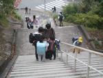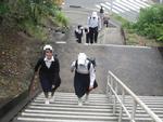 8時過ぎくらいまでは小学生の登校がメインで、中には久しぶりの登校に疲れたのか、階段の途中で座り込んでいる子もいました。8時10分過ぎくらいからは中学生の登校が増えてきました。見ている限りどの生徒も元気で、久しぶりの登校にも友達に会えるのがうれしいのか、いつも以上に明るい表情の生徒が多かったように思います。