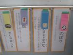 さて、栄養教諭の先生が、また新たな掲示物をつくって掲示してくださっています。先日は「五節句」の掲示についてお知らせしましたが、今回はその横に「夏が旬の魚」と題して、漢字で書かれた魚の名前を当てるクイズ形式で、夏においしい魚の紹介をしてくださっています。加えて、「中秋の名月」についてや、「食べものとことば」と題して、食べ物が使われていることわざなどの紹介もしてくださっています。