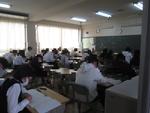 1時間目にテストを受けている様子を廊下歩きながら見てまわりました。生徒たちはみな真剣にテストに向き合っていました。頑張っている様子がいじらしく、心の中で「がんばれ!」とつぶやきながら見て回りました。