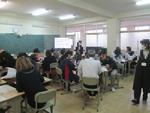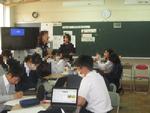 授業後には教職員で、この授業をもとに研究協議を行いました。数学の授業でしたが、自分たちの教科にも生かせる部分が多々あったので、みんなで意見を出し合い、教職員も互いに多くのことを学びあいました。これからの各教科での授業に生かしていきたいと思います。