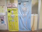 また、「マイデイリールーティーン」ということで、生活の中に自分なりのルーティーンを取り入れることで、例えばポジティブに生活を送ることができるなど、これもとても興味深く、生徒たちにはたいへん参考になる話が掲示されています。そしてそして、大きなガイコツの掲示物に骨の模型。思わず目が留まります。骨の数、骨の大きさなど、自分の体に関心を持ち、それが健康な生活につながってくれればと思います。