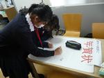 今日は午後の練習の様子を見ることができないので、午前中の授業の様子を見て回りました。みんな落ち着いた雰囲気の中で、しっとりと授業を受けていました。各階の多目的室ものぞきましたが、今年度は体育大会用の横断幕や看板の作成がスムーズに進んでいるのか、部屋の中は片付いており、横断幕や看板も教室の端や掃除箱の横などに綺麗にたたんで置いてありました。余裕のない年は、体育大会直前ともなると、看板や横断幕づくりの作業をした後の片付けも、行き届かないまま翌朝を迎えることも多いのですが、今年度はそういうこともなさそうです。
